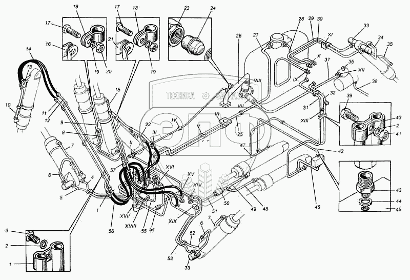 Каталог запасных частей к технике: Булат ЭО-2621B. Гидроразводка
