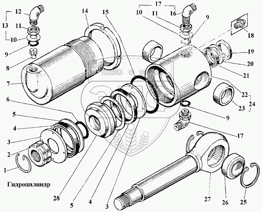 Каталог запасных частей к технике: Булат ЭО-2621В-3. Гидроцилиндр