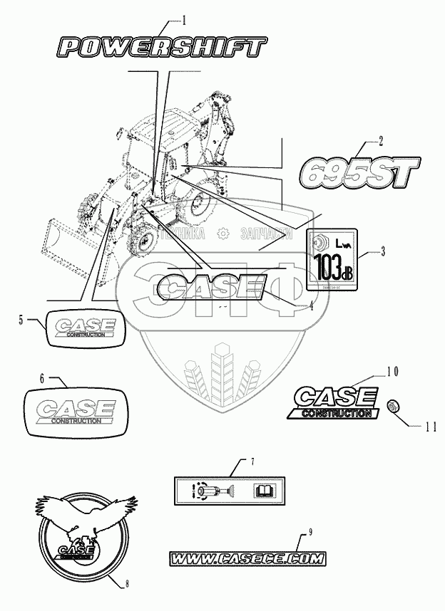 Каталог запасных частей к технике: CASE IH 695ST (часть 3). 90.108.0203 DECALS