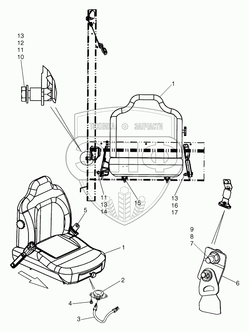 Каталог запасных частей к технике: CASE IH Case-430. SEAT, MOUNTING - SUSPENSION