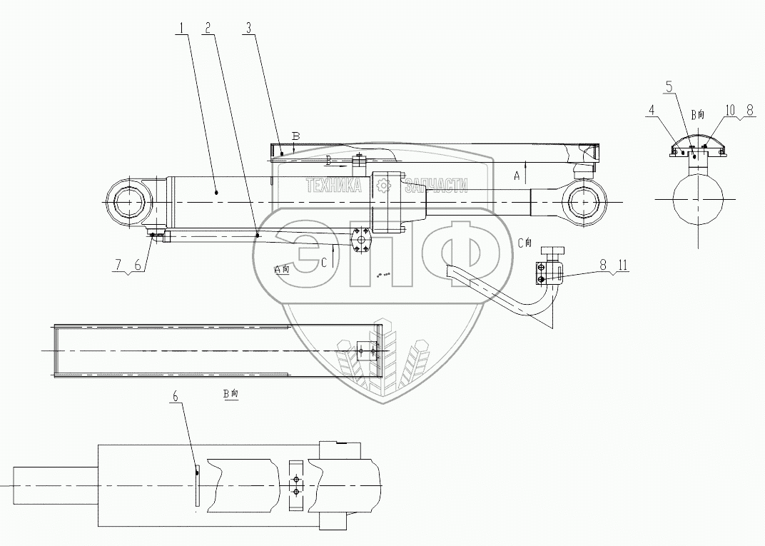 Каталог запасных частей к технике: ChengGong CG-932H. Z33E1005T7 Tilting Cylinder Assembly