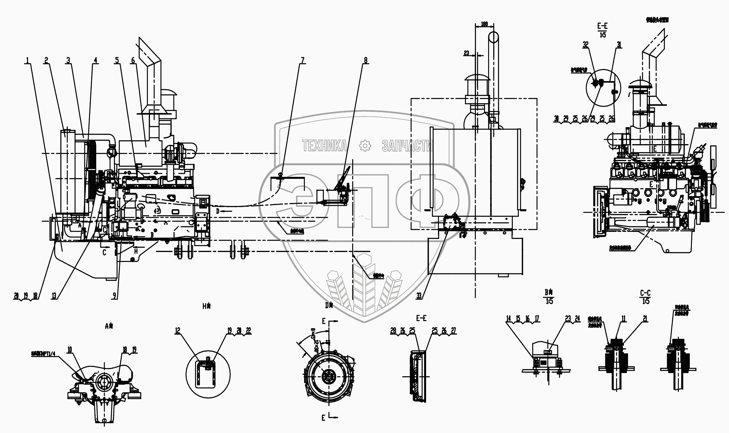 Каталог запасных частей к технике: ChengGong CG-932H. Z33E01T47 Engine Assembly