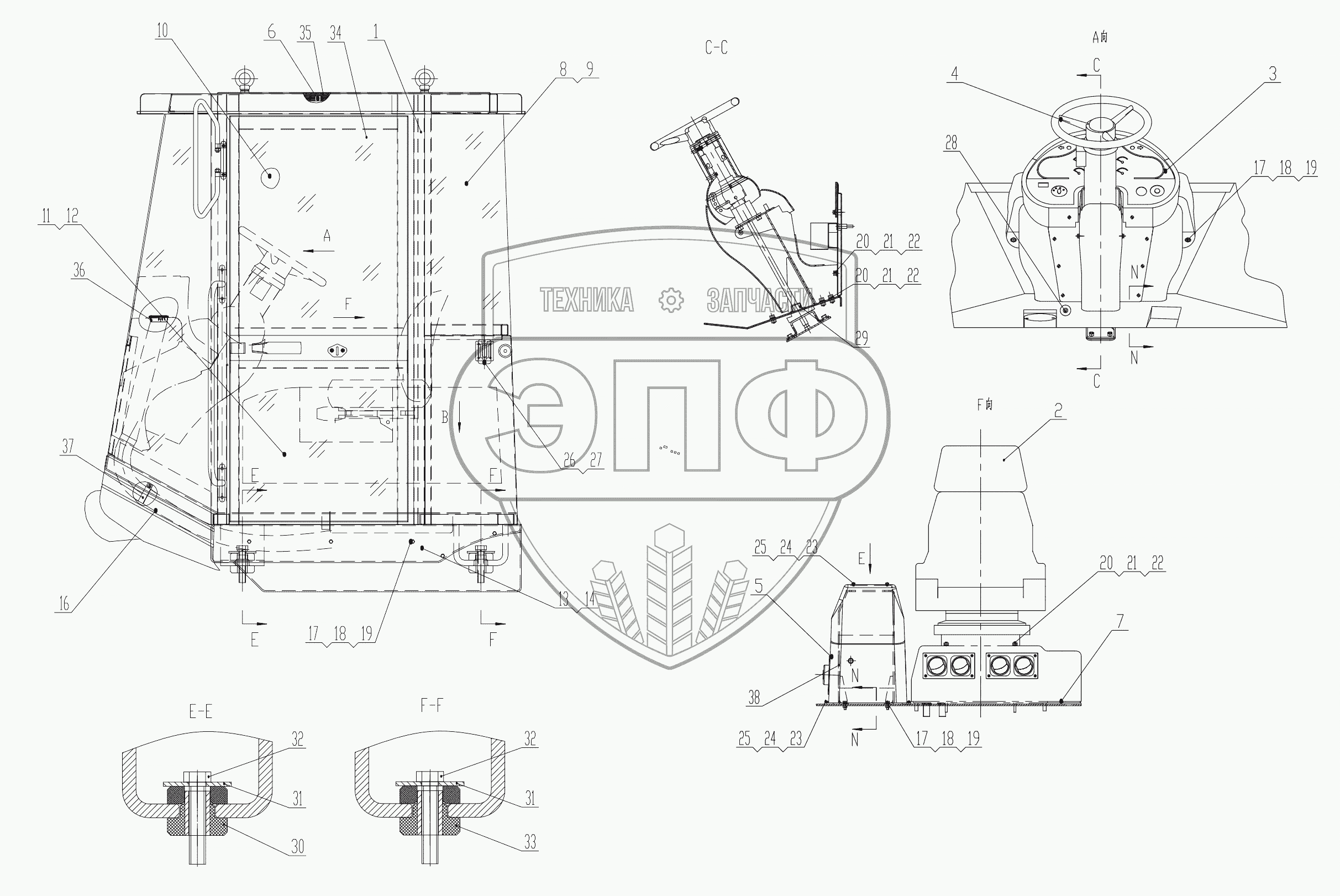Каталог запасных частей к технике: ChengGong CG-932H. Z33E13T35 Cab