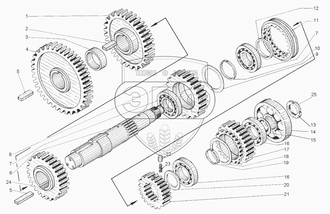 Каталог запасных частей к технике: ЧСДМ ДЗ-98В. Вал реверса (Д395Б.04.030)