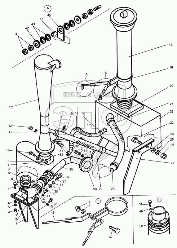 Каталог запасных частей к технике: ЧСДМ ДЗ-98В. Система всасывания и выхлопа