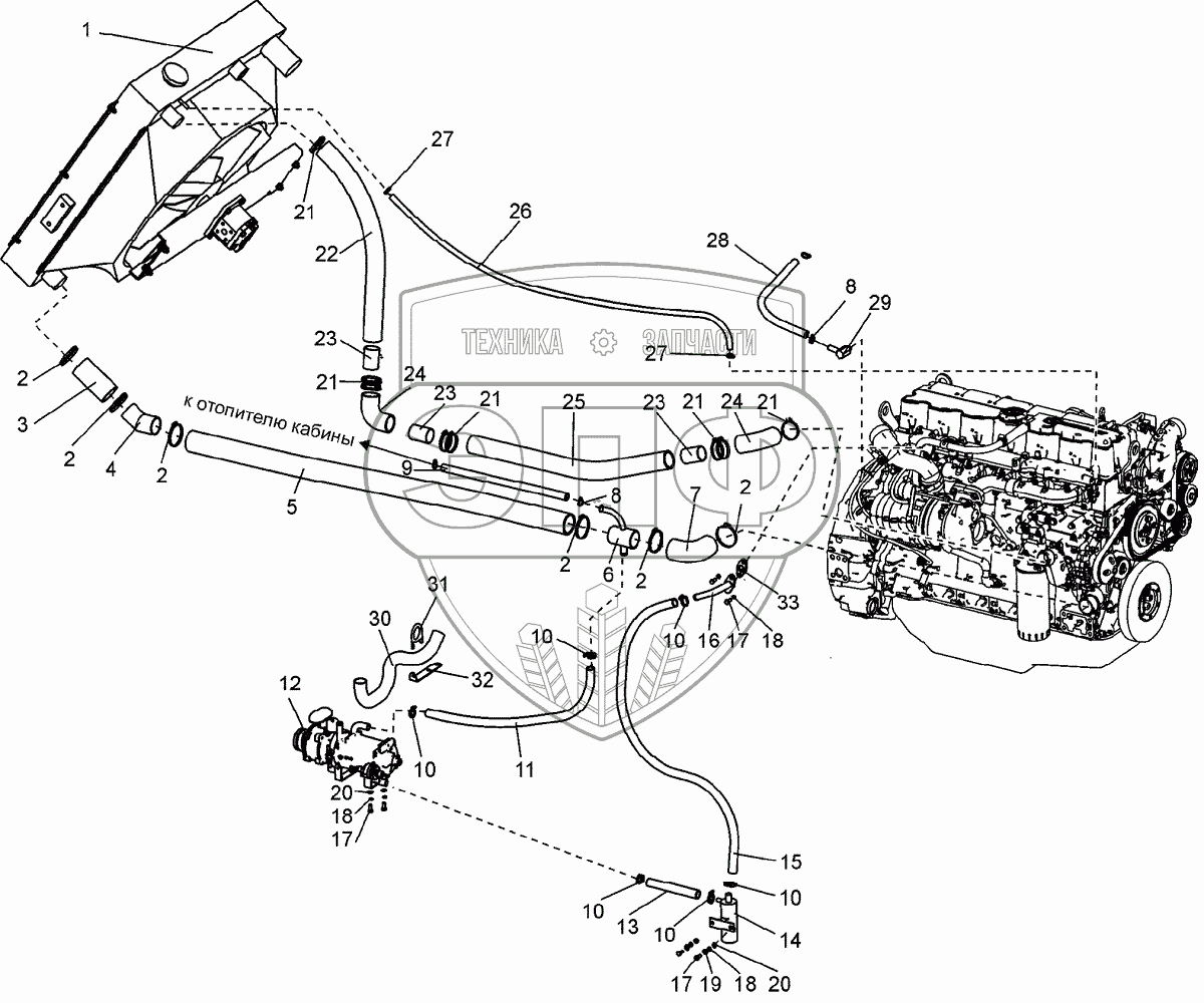 Каталог запасных частей к технике: ЧСДМ TL-155. Система охлаждения и разогрева двигателя
