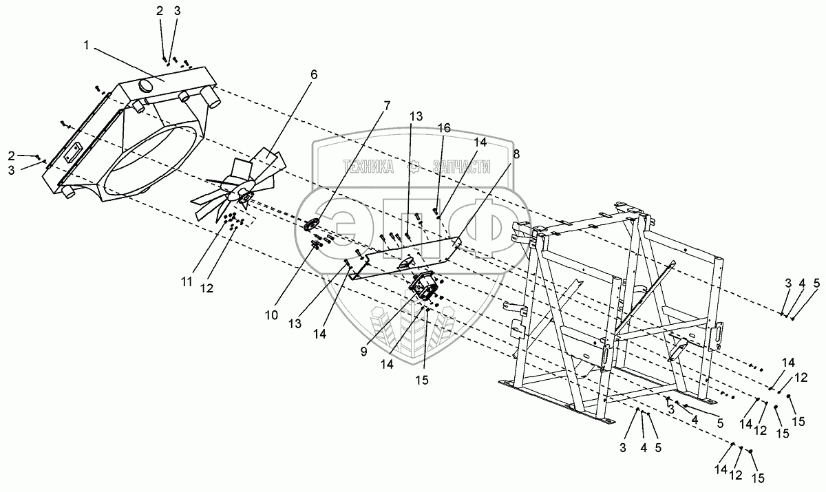 Каталог запасных частей к технике: ЧСДМ TL-155. Установка блока радиаторов