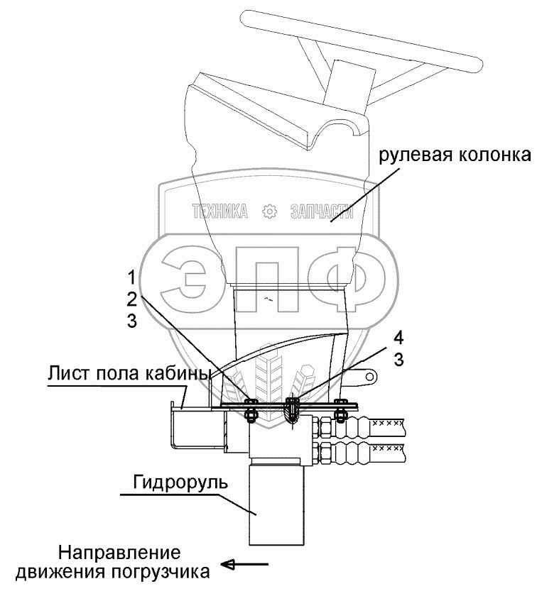 Каталог запасных частей к технике: ЧСДМ TL-155. Установка рулевой колонки