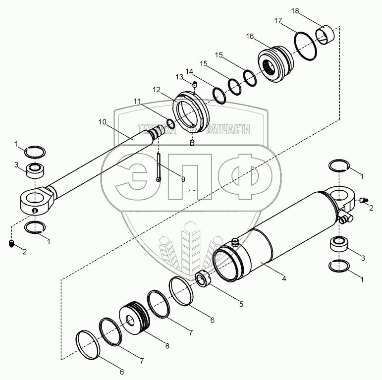 Каталог запасных частей к технике: ЧСДМ В-140. Гидроцилиндр (B140.43.02.000)