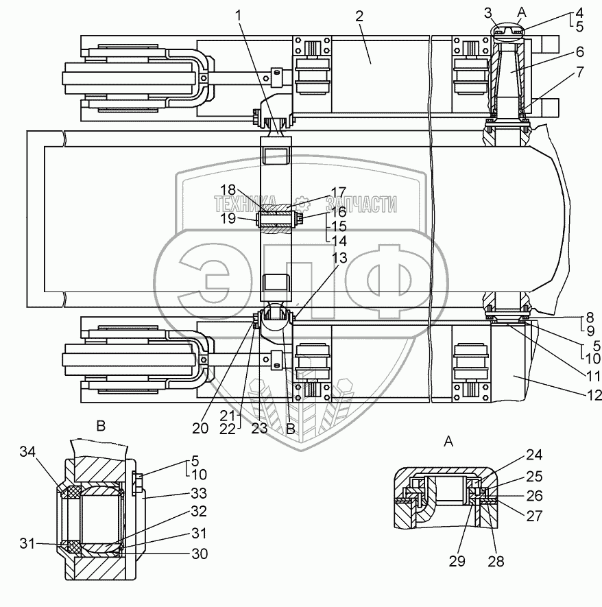 Каталог запасных частей к технике: ЧТЗ Бульдозер Б12. Установка тележек
