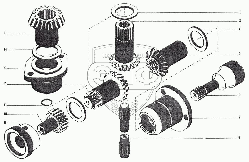 Каталог запасных частей к технике: ЧТЗ ДЭТ-250М2. Передача к агрегатам