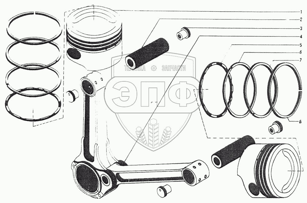 Каталог запасных частей к технике: ЧТЗ ДЭТ-250М2. Шатун и поршень