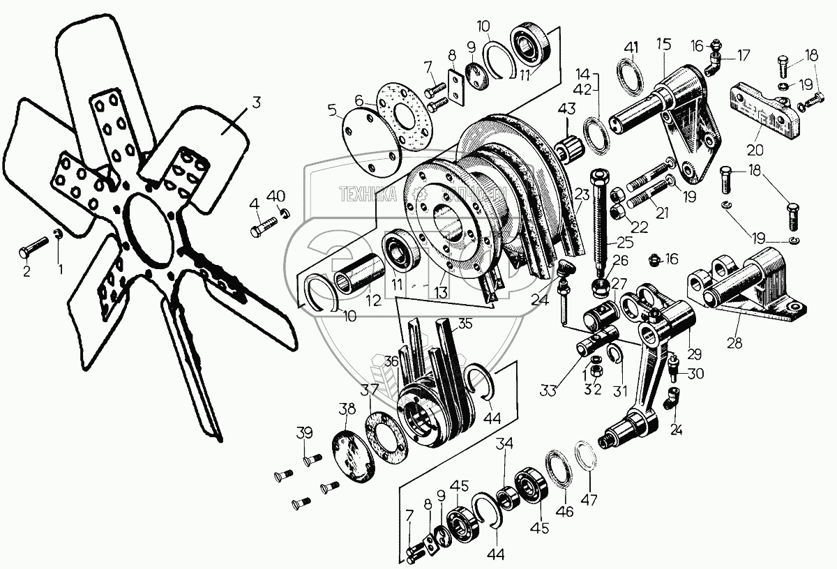 Каталог запасных частей к технике: ЧТЗ Кран ТР-20, ТР-12. Установка вентилятора