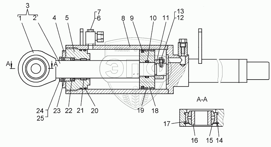 Каталог запасных частей к технике: ЧТЗ Рабочее оборудование Б10М. Гидроцилиндр