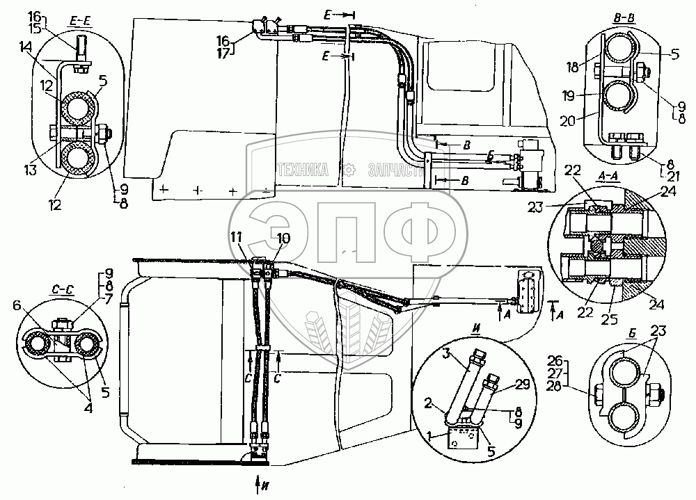 Каталог запасных частей к технике: ЧТЗ Т-10.02. Установка передних трубопроводов