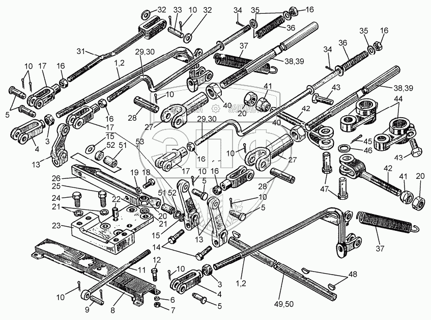Каталог запасных частей к технике: ЧТЗ Т-10М. Детали управления механической трансмиссией