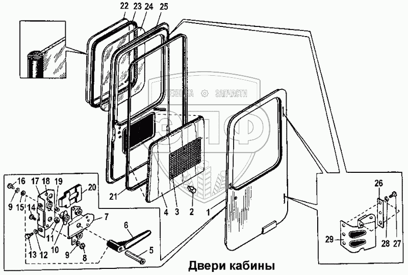 Каталог запасных частей к технике: ЧТЗ Т-170. Двери кабины