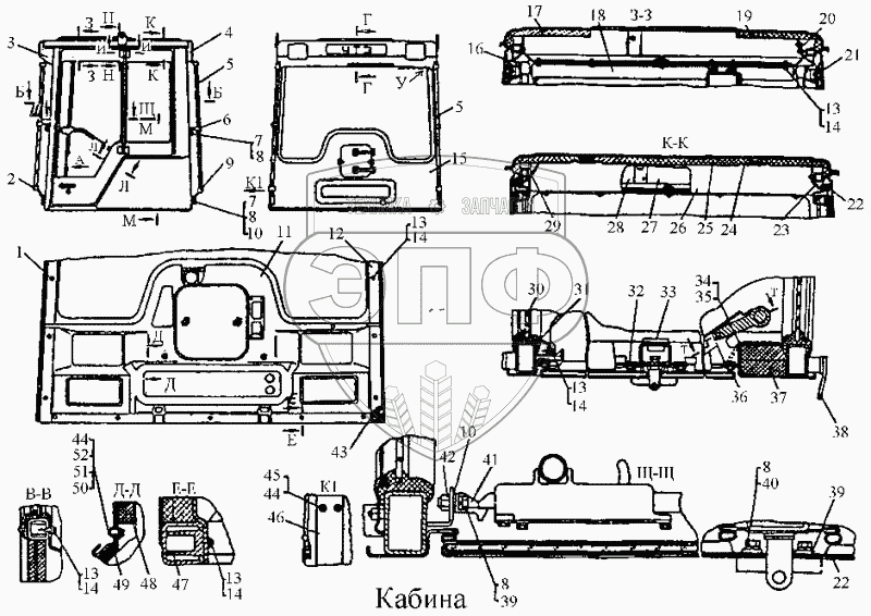 Каталог запасных частей к технике: ЧТЗ Т-170. Кабина