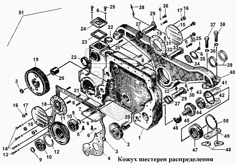 Каталог запасных частей к технике: ЧТЗ Т-170. Кожух шестерен распределения