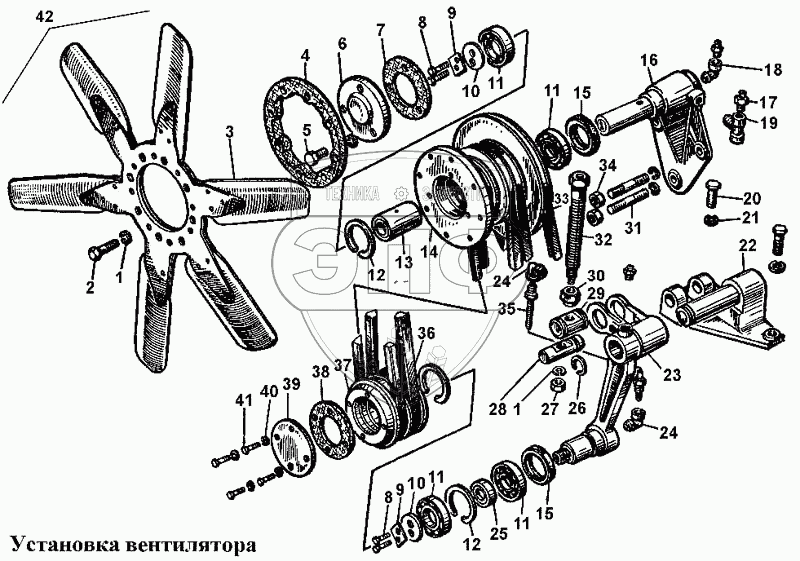 Каталог запасных частей к технике: ЧТЗ Т-170. Установка вентилятора