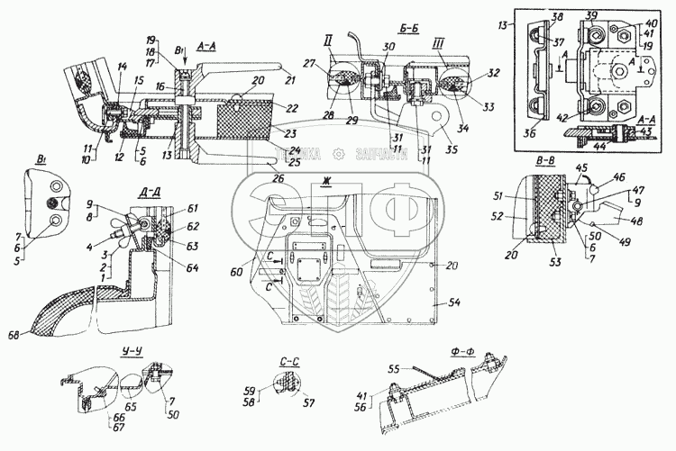 Каталог запасных частей к технике: ЧТЗ Т-170М-01. Кабина. Детали кабины