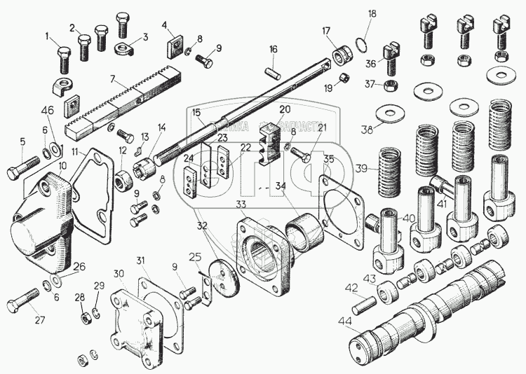 Каталог запасных частей к технике: ЧТЗ Т-170М-01. Механизм привода плунжеров