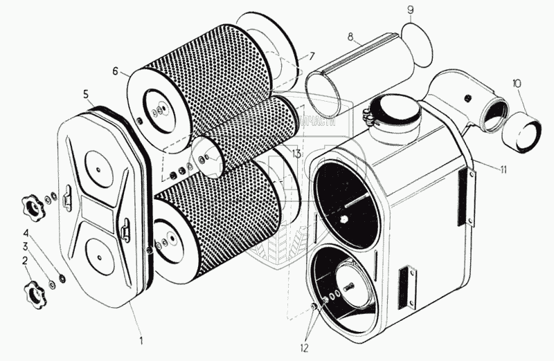 Каталог запасных частей к технике: ЧТЗ Т-170М-01. Воздухоочиститель дизеля