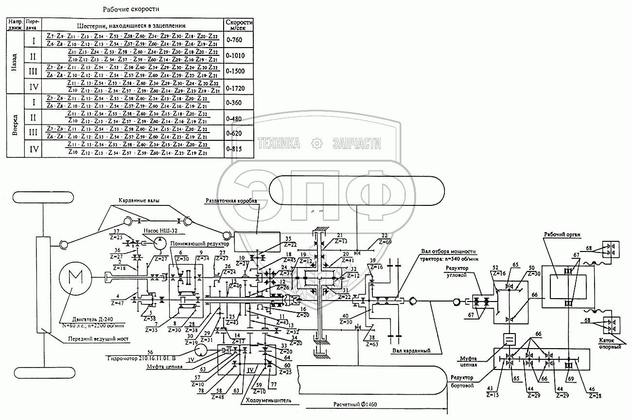 Каталог запасных частей к технике: ДЭЗ ФД-500. Схема кинематическая