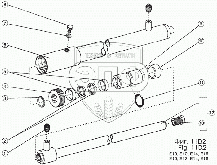 Каталог запасных частей к технике: Dimex-E-10. Плунжерный цилиндр /D12E, D18E/