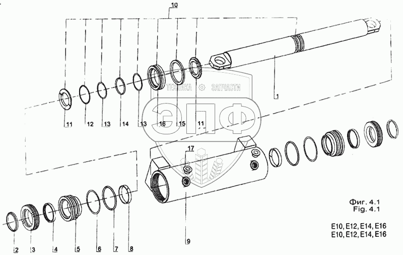 Каталог запасных частей к технике: Dimex-E-10. Поршневой цилиндр