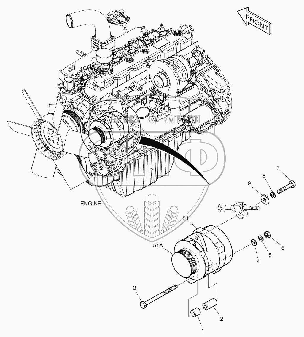 | 51A | 130707-00030 | Pulley, alternator | Нет на складе | |