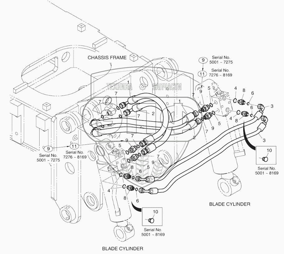 Каталог запасных частей к технике: Doosan DX140W. FRONT DOZER PIPING