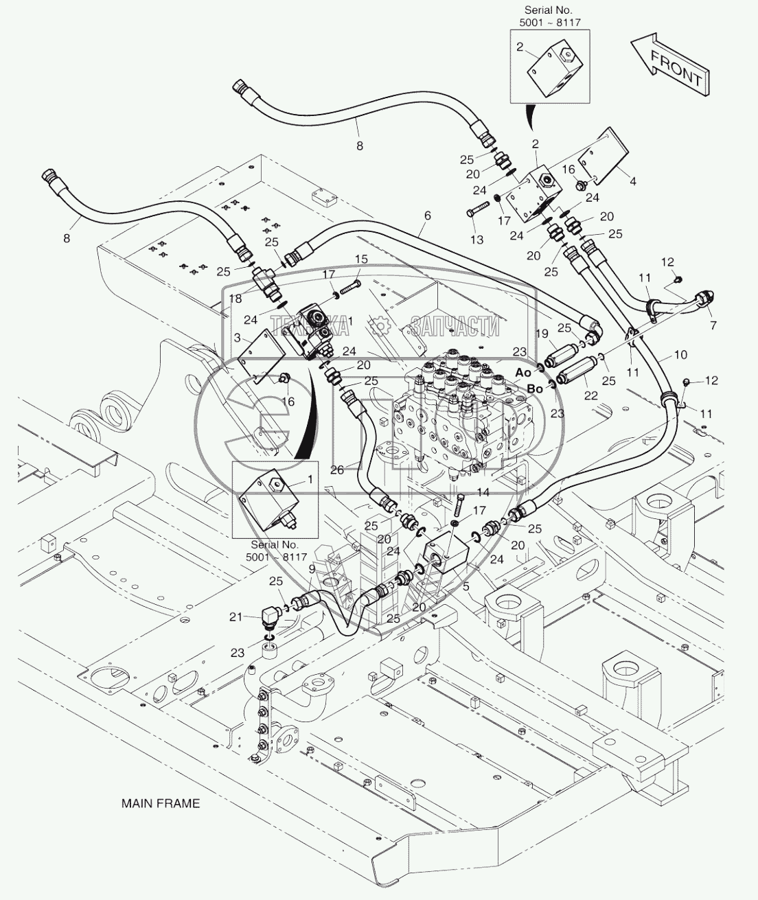 Каталог запасных частей к технике: Doosan DX140W. MAIN PIPING-TWO WAY