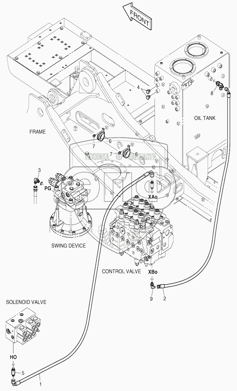 Каталог запасных частей к технике: Doosan DX140W. PILOT PIPING (1) - ONE WAY