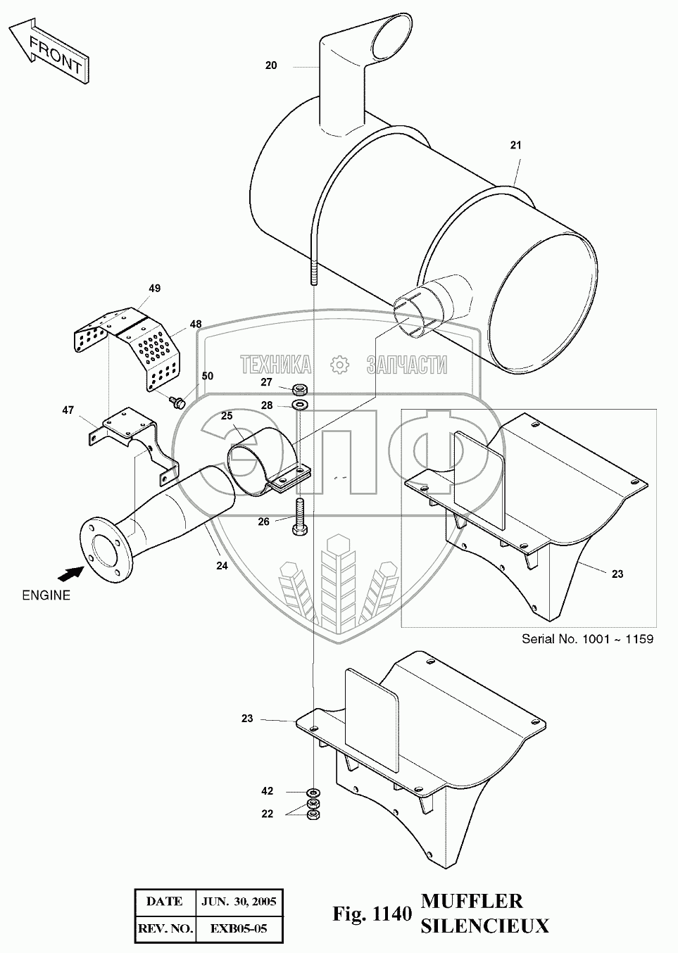 Каталог запасных частей к технике: Doosan Экскаватор SOLAR 140LC-V. 1140 Глушитель