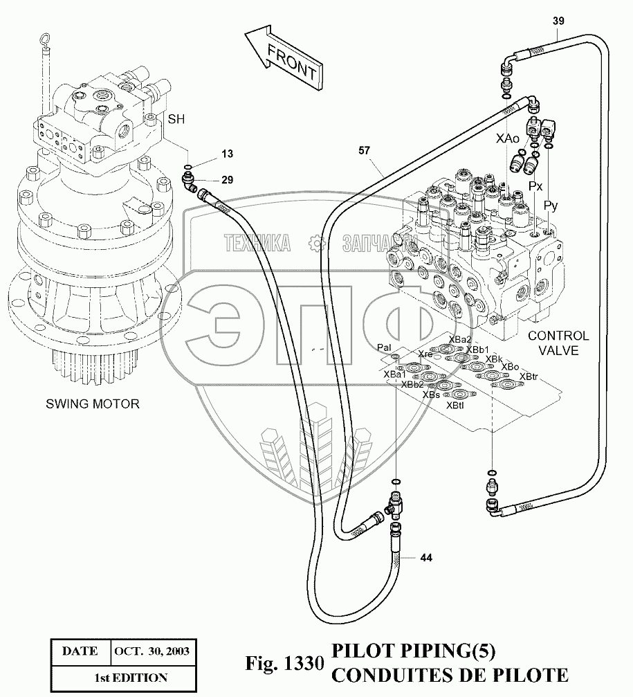 Каталог запасных частей к технике: Doosan Экскаватор SOLAR 140LC-V. 1330 Трубопроводы управления