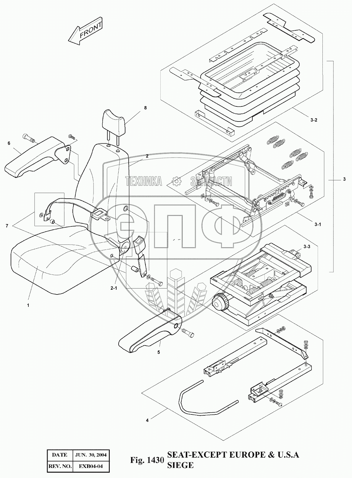 Каталог запасных частей к технике: Doosan Экскаватор SOLAR 140LC-V. 1430 Сиденье
