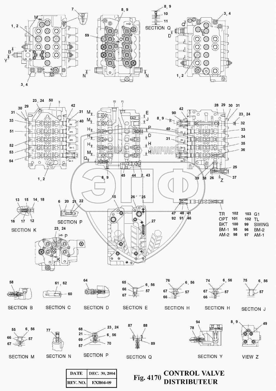 Каталог запасных частей к технике: Doosan Экскаватор SOLAR 140LC-V. 4170 Гидрораспределитель