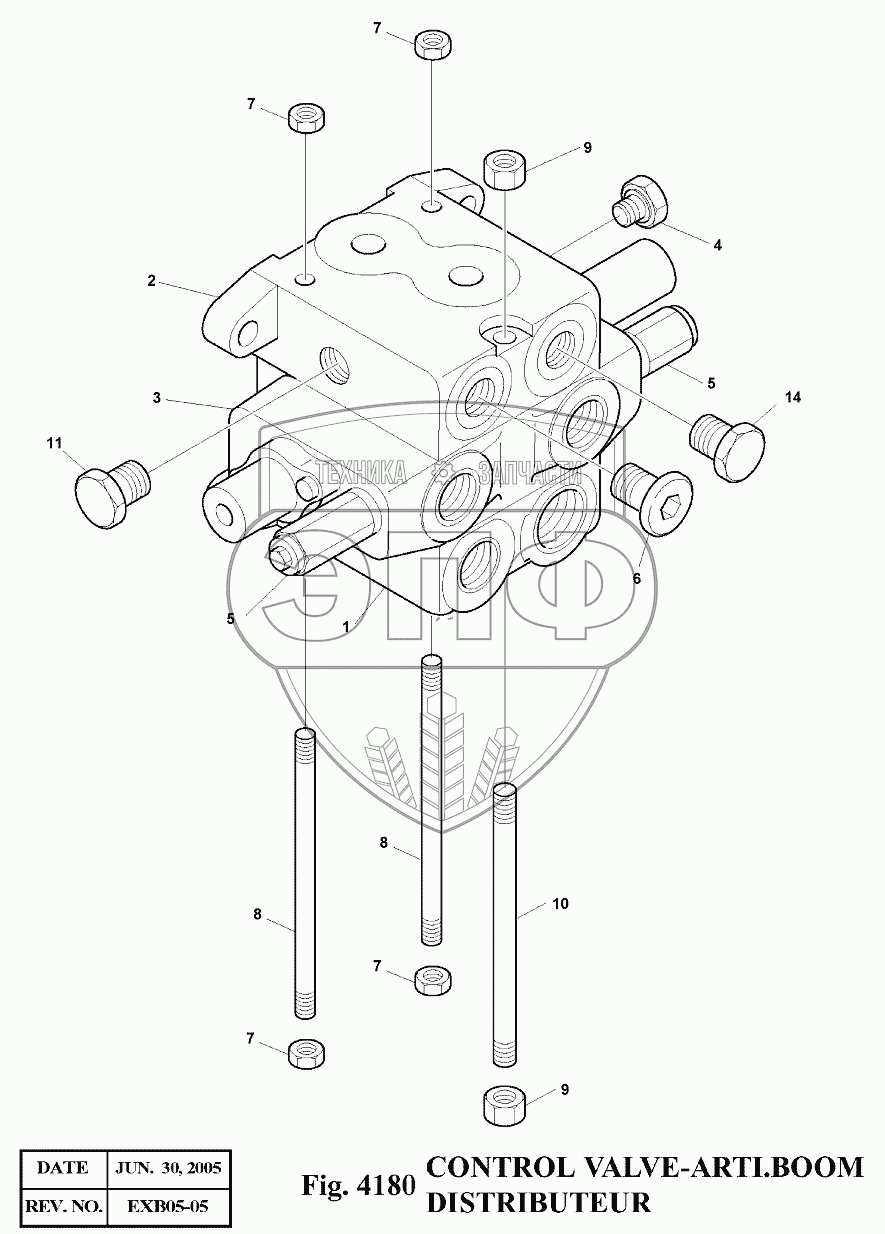 Каталог запасных частей к технике: Doosan Экскаватор SOLAR 140LC-V. 4180 Гидрораспределитель