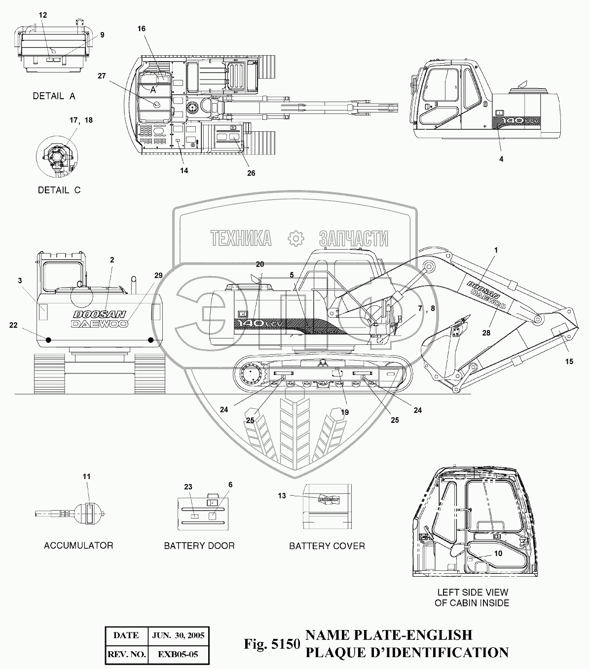 Каталог запасных частей к технике: Doosan Экскаватор SOLAR 140LC-V. 5150 Таблички