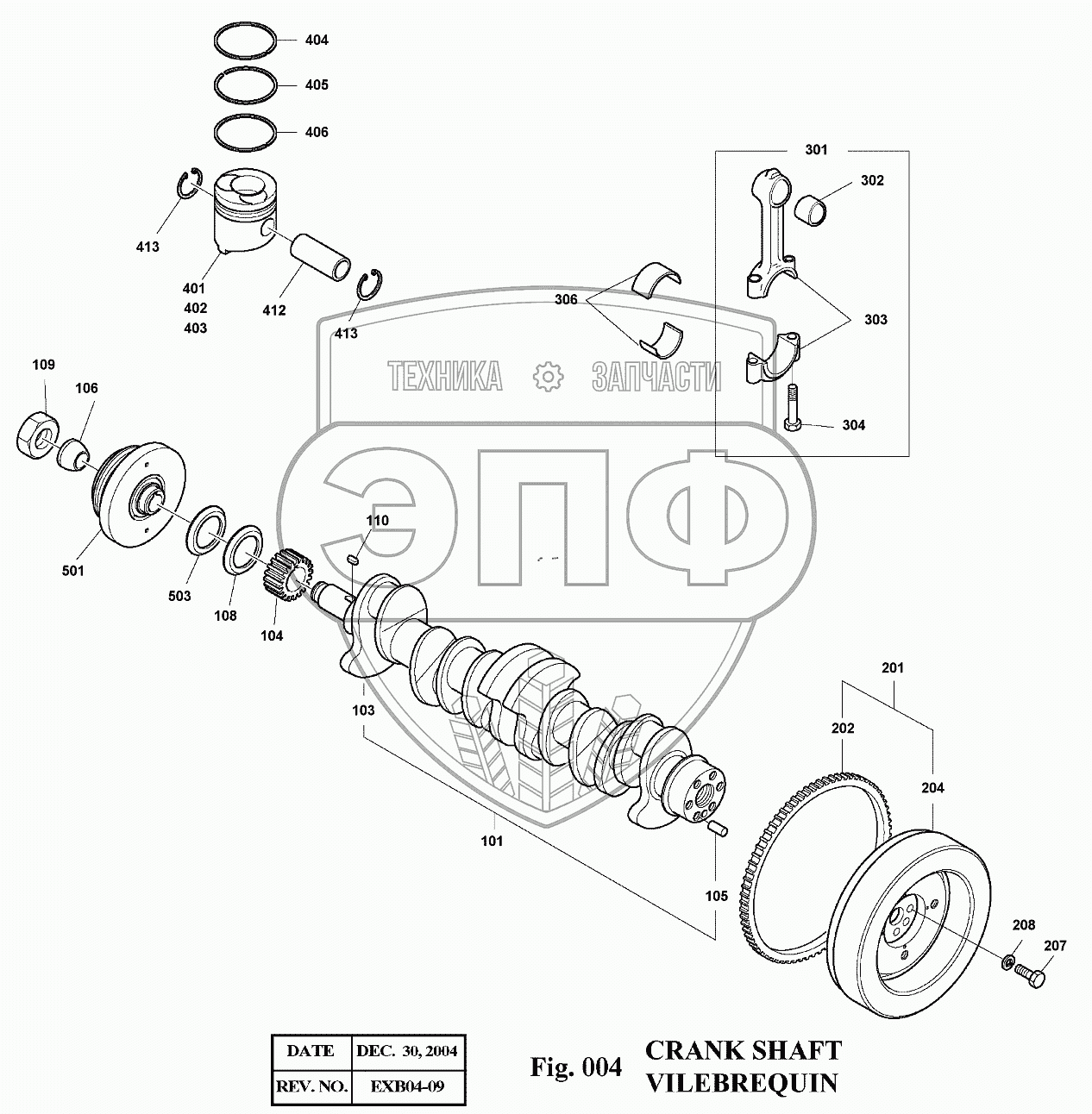 Каталог запасных частей к технике: Doosan Экскаватор SOLAR 175LC-V. 004 Вал коленчатый