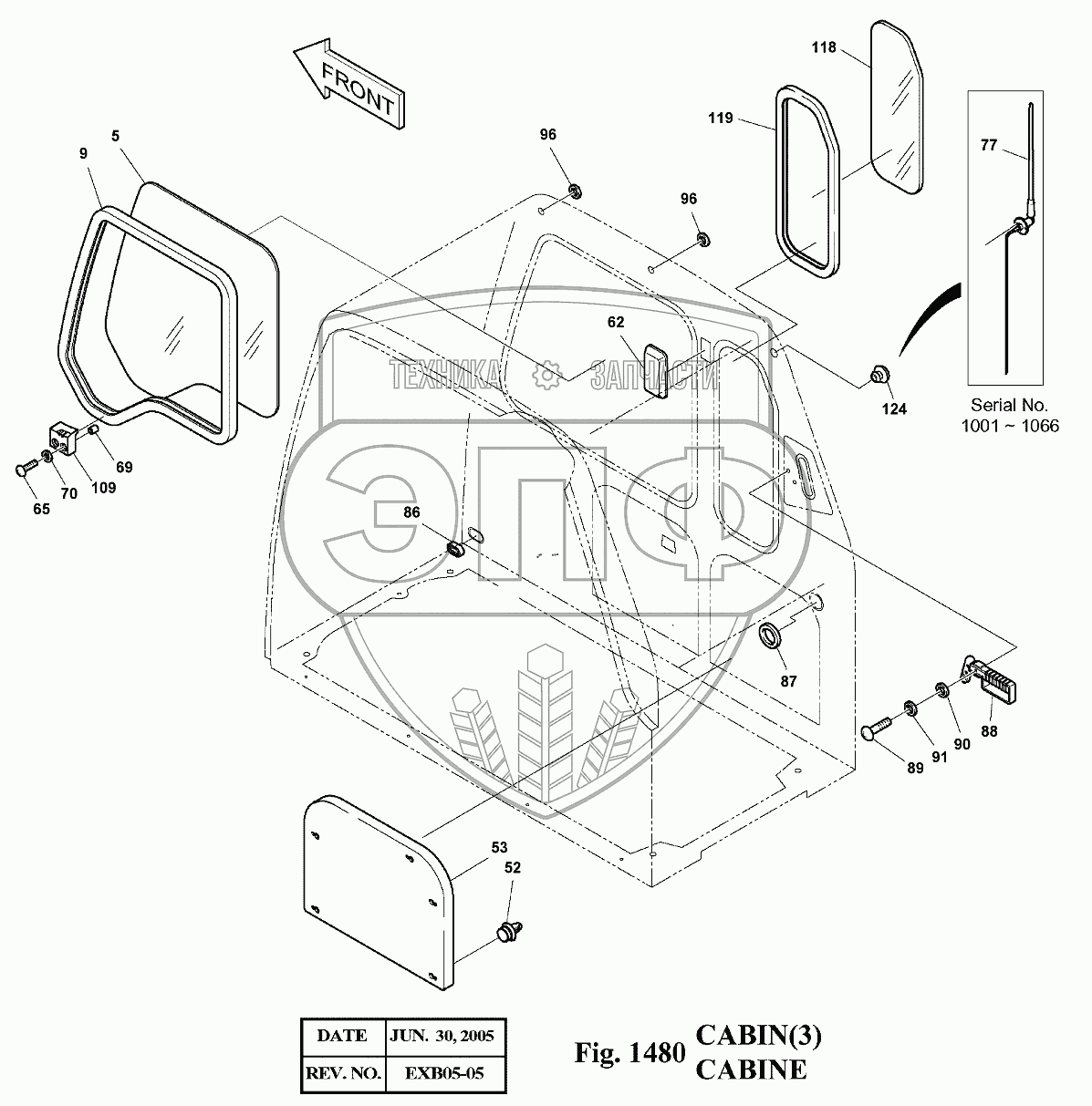 Каталог запасных частей к технике: Doosan Экскаватор SOLAR 175LC-V. 1480 Кабина