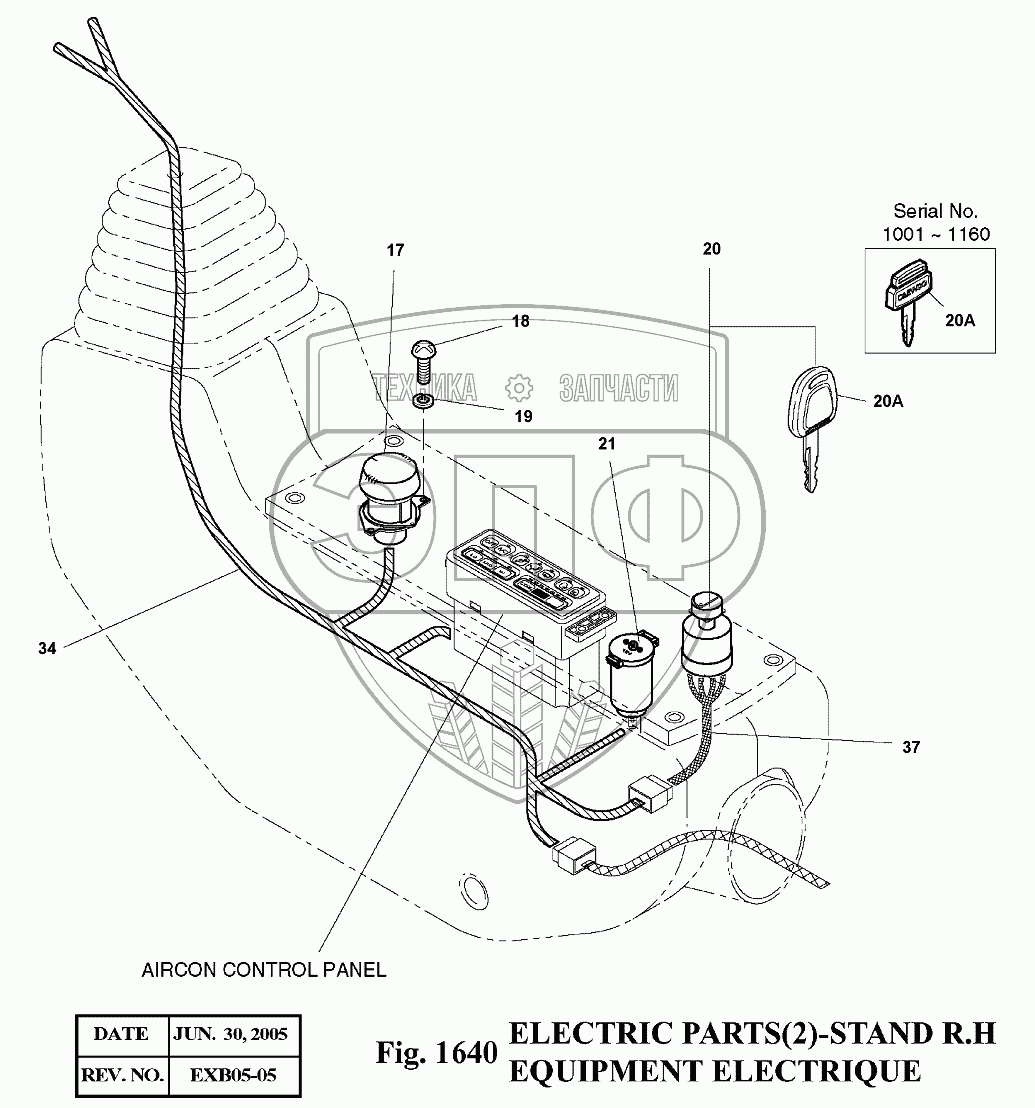 Каталог запасных частей к технике: Doosan Экскаватор SOLAR 175LC-V. 1640 Электрооборудование