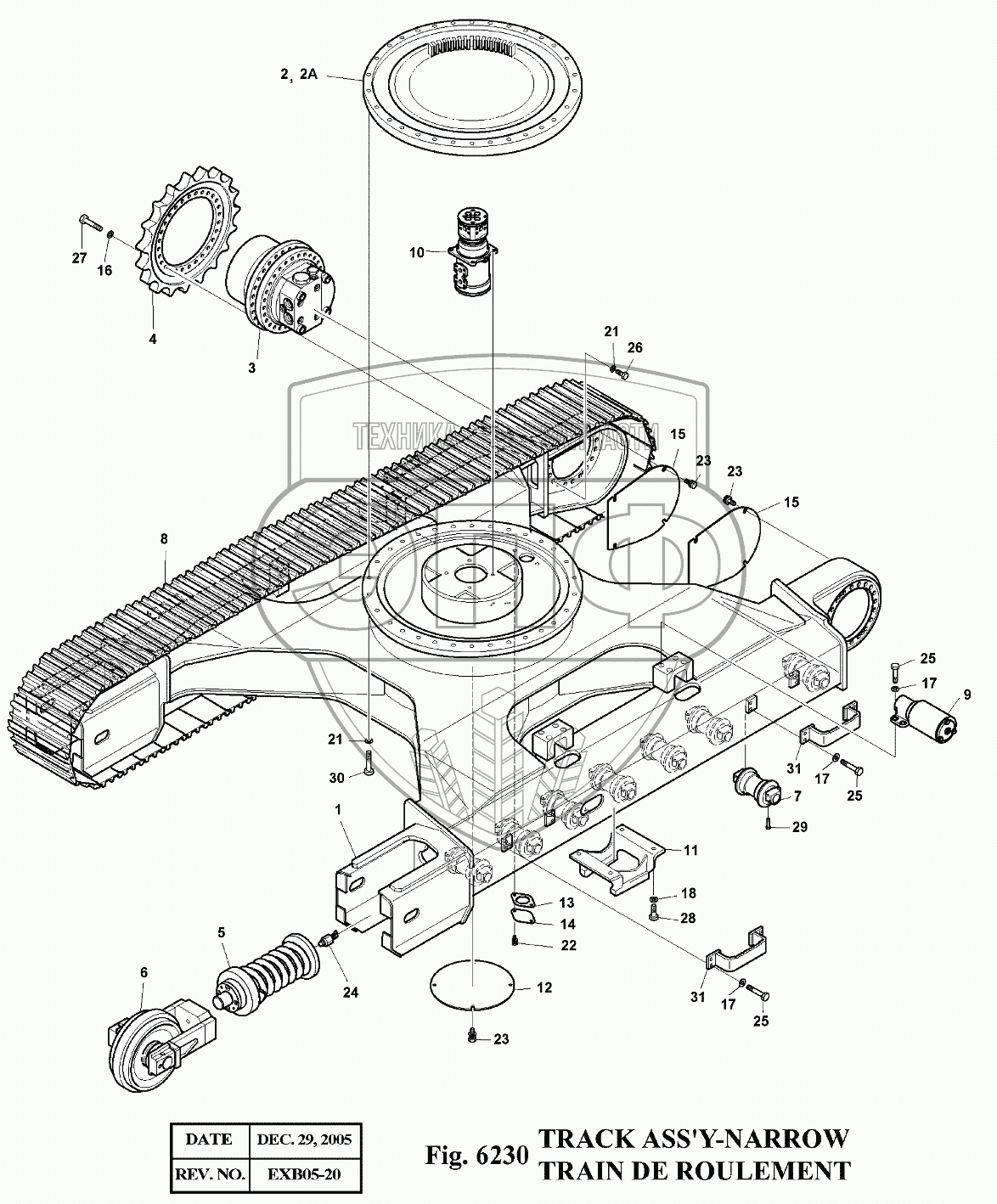 Каталог запасных частей к технике: Doosan Экскаватор SOLAR 175LC-V. 6230 Тележка гусеничная