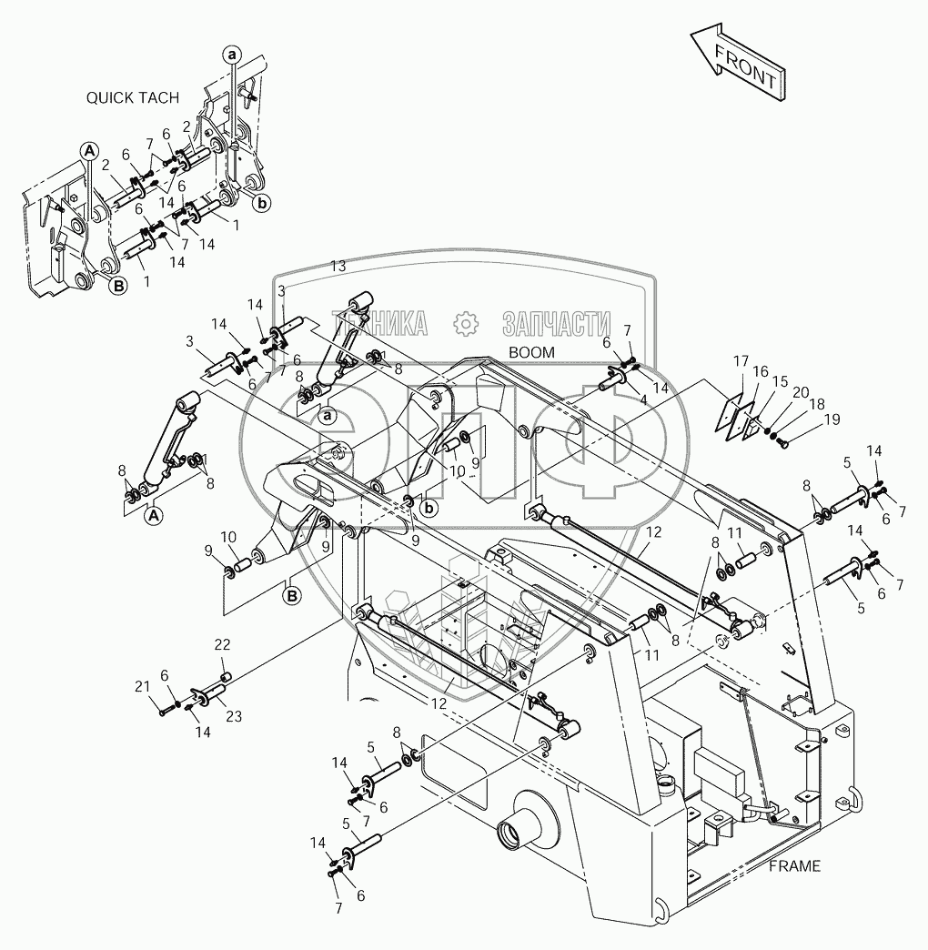 Каталог запасных частей к технике: Doosan Мини-погрузчик 430 Plus. 1210 Установка стрелы