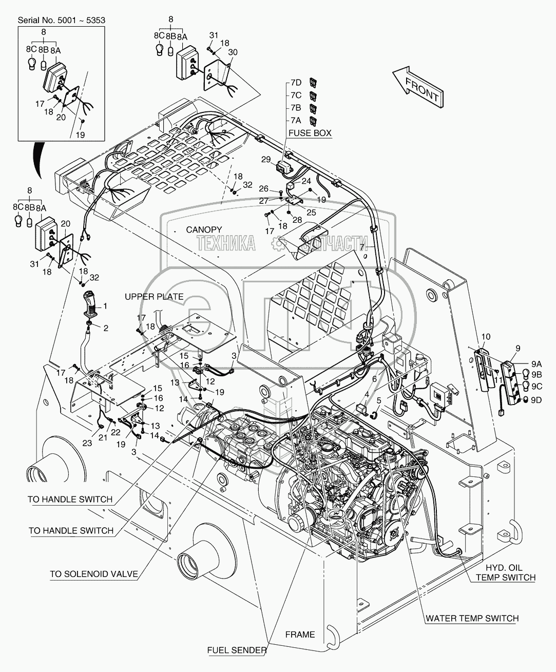 Каталог запасных частей к технике: Doosan Мини-погрузчик 430 Plus. 6220 Дополнительное освещение