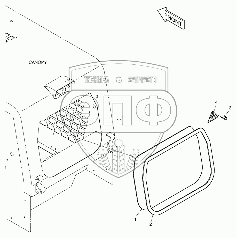 Каталог запасных частей к технике: Doosan Мини-погрузчик 440 Plus. 1160 Заднее окно