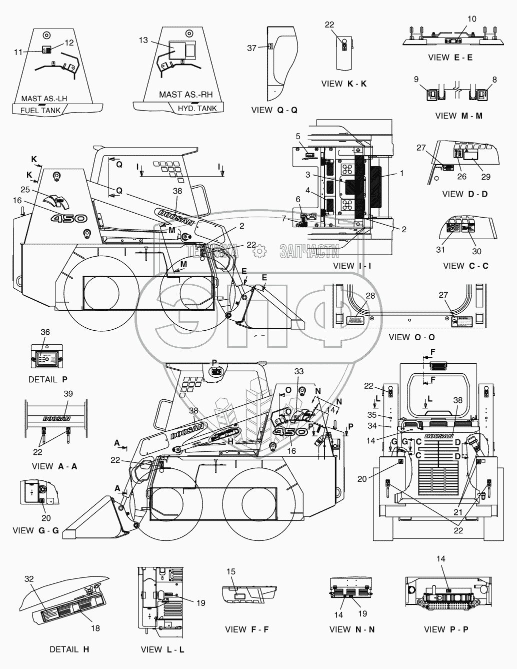 Каталог запасных частей к технике: Doosan Мини-погрузчик 450 Plus. 5100 Таблички