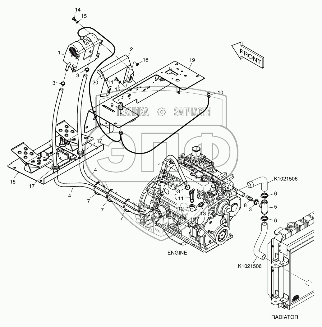 Каталог запасных частей к технике: Doosan Мини-погрузчик 450 Plus. 6280 Трубопроводы отопителя