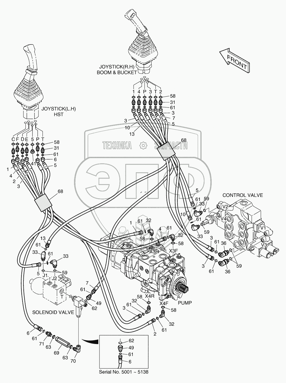 Каталог запасных частей к технике: Doosan Мини-погрузчик 450 Plus. 6550 Трубопроводы управления